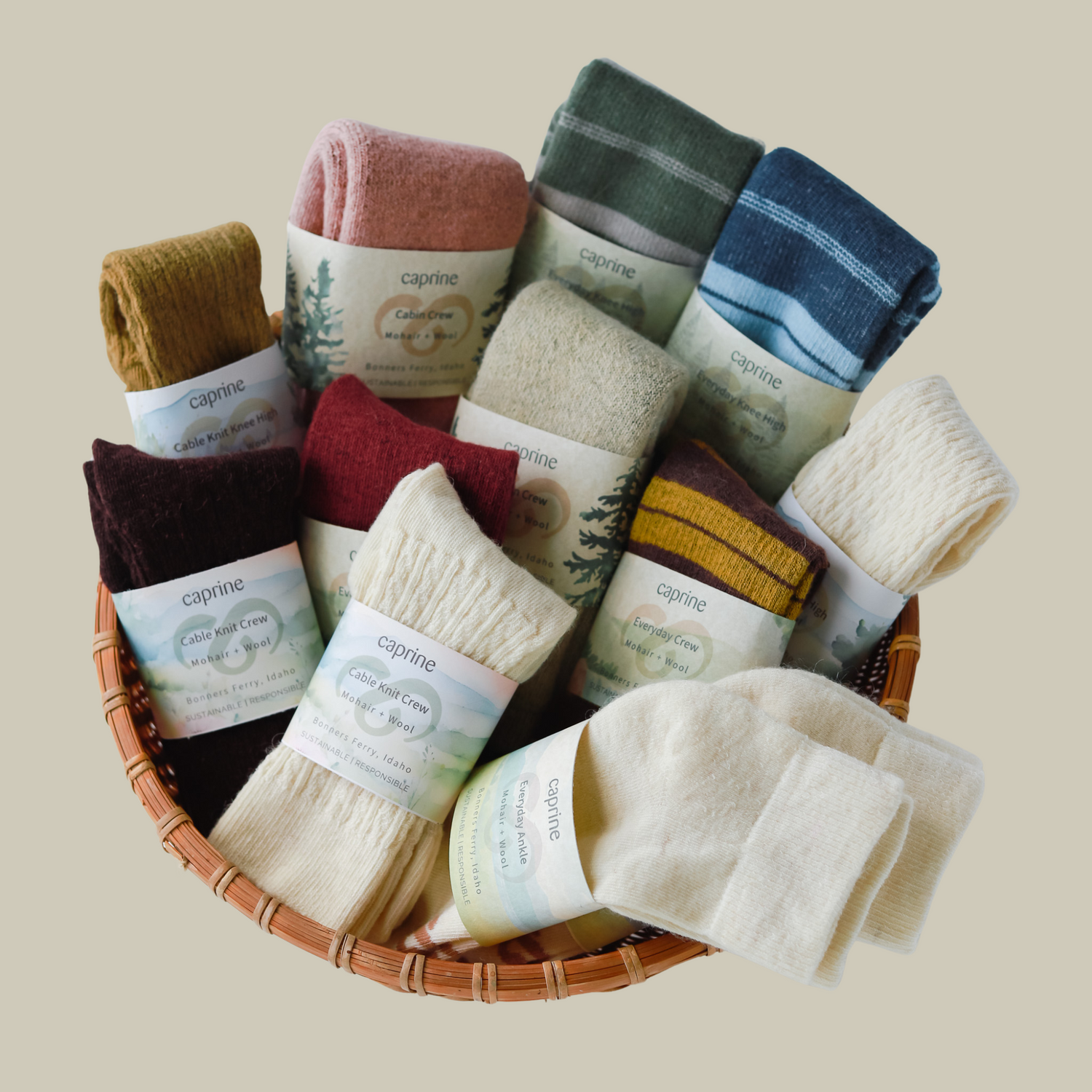 Caprine makes naturally soft socks and throws in the USA with American mohair. We are dedicated to making useful mohair goods that last. Sustainability and quality are of the utmost importance and that's something you can not only see, but feel.